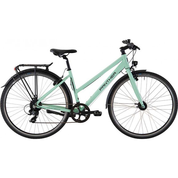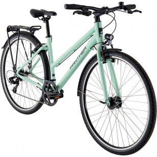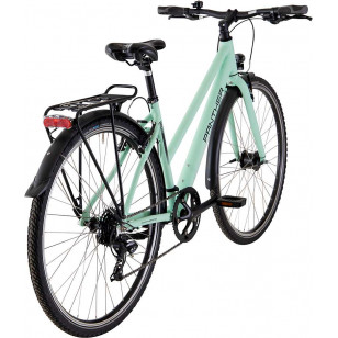 Rama:µaluminium, trapez Widelec:µsztywny Biegi:µShimano TX 8-biegowy, przekładnia łańcuchowa Obręcze:µaluminium, wielokomorowe Piasty:µprzód: aluminium, Shimano dynamopiasta µtył: aluminium, 8-biegowa, wolnobieg Ogumienie:µSchwalbe Tyrago Light, czarne z odblaskiem Hamulec:µTektro V-Brake Oświetlenie:µprzód: AXA Compactline, 20 ls µtył: AXA Slim LED Dopuszczalna waga całkowita:µ120 kg Waga:µokoło 14 kg Kolor:µmiętowy mat