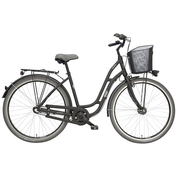 Rama: aluminium, turystyczna Widelec: aluminium, sztywny Biegi: Shimano Nexus 3-biegowy, torpedo Obręcze: aluminium, czarne Piasty: przód: aluminium, Shimano dynamopiasta tył: 3-biegowa, torpedo Ogumienie: Schwalbe Spicer, grafitowe z odblaskiem Hamulce: V-Brake & pedałowy w piaście Oświetlenie: przód: Büchel "City LED", z włącznikiem tył: AXA "Slim" Dopuszczalna waga całkowita: 120 kg Waga:około 17,3 kg Kolor: czarny mat