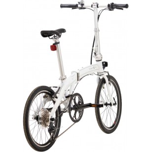 Rama: aluminium, "Mu D8", składana Widelec: aluminium, sztywny Biegi: Shimano 8-biegowy Obręcze: Dahon, aluminium Hamulce: na obręczy Piasty: przód: Dahon, aluminium tył: aluminium, 8-biegowa, przekładnia łańcuchowa Ogumienie: czarne Siodełko: Dahon Ergo Comfort Waga: około 12,1 kg Kolor: biały