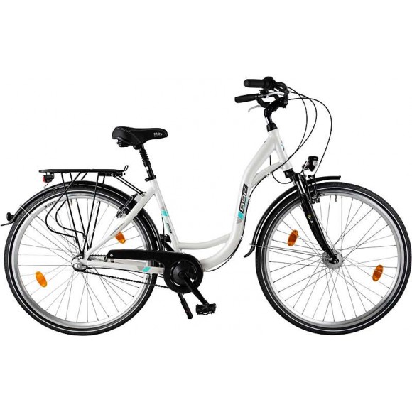 Rama: aluminium, Wave Widelec: amortyzowany Biegi: Shimano Nexus 3- lub 7-biegowy, torpedo Obręcze: aluminiu, wielokomorowe, srebrne Piasty: przód: aluminium, Shimano dynamopiasta tył: aluminium, srebrna, 3- lub 7-biegowa Ogumienie: czarne z odblaskiem Hamulce: przód: aluminium, V-Brake tył: aluminium, V-Brake & pedałowy w piaście Oświetlenie: przód: LED tył: LED, światło pozycyjne Kolor: biały