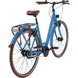 Rama: aluminium, Wave Widelec: sztywny Biegi: Shimano Nexus 8-biegowy, torpedo Obręcze: aluminium, wielokomorowe Piasty: przód: aluminium, Shimano dynamopiasta tył: aluminium, 8-biegowa, torpedo Ogumienie: Schwalbe Road Cruiser, brązowe z odblaskiem Hamulce: Magura HS11, hydrauliczne Oświetlenie: przód: Büchel City, 30 ls tył: Büchel Edge LED Dopuszczalna waga całkowita: 120 kg Waga: 16,8 kg Kolor: niebieski mat