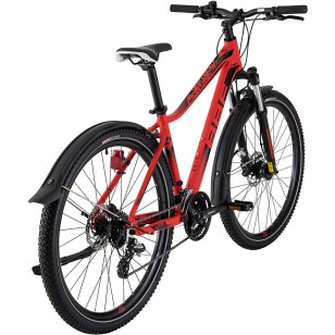 Rama: aluminium, SUV Widelec: amortyzowany, Suntour XCT Biegi: Shimano Altus 24-biegowy Obręcze: aluminium, wielokomorowe, X6 Piasty: przód: Shimano dynamopiasta tył: 24-biegowa Ogumienie: Impac Smartpac, czarne z odblaskiem Hamulce: Shimano EF505 tarczowe, hydrauliczne Oświetlenie: Büchel Uni Pro, 25 ls tył: Büchel Z-Fire Steady Dopuszczalna waga całkowita: 120 kg Waga: około 17,2 kg Kolor: czerwony mat