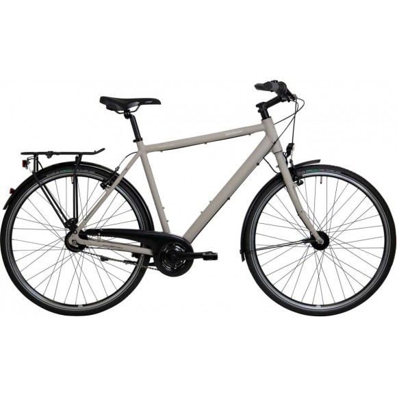 Rama: aluminium, męska Widelec: aluminium, sztywny Biegi: Shimano Nexus 8-biegowy, wolnobieg Obręcze: aluminium, wielokomorowe, X2 Piasty: przód: Shimano dynamopiasta, czarna tył: 8-biegowa, wolnobieg Ogumienie: Schwalbe Road Cruiser, czarne z odblaskiem Hamulce: Shimano BR-T4000, V-Brake Oświetlenie: przód: Büchel Uni Pro, 25 ls tył: Büchel Route 66 Dopuszczalna waga całkowita: 120 kg Waga: około 14,4 kg Kolor: ciemnoszary mat