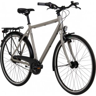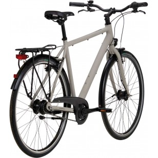 Rama: aluminium, męska Widelec: aluminium, sztywny Biegi: Shimano Nexus 8-biegowy, wolnobieg Obręcze: aluminium, wielokomorowe, X2 Piasty: przód: Shimano dynamopiasta, czarna tył: 8-biegowa, wolnobieg Ogumienie: Schwalbe Road Cruiser, czarne z odblaskiem Hamulce: Shimano BR-T4000, V-Brake Oświetlenie: przód: Büchel Uni Pro, 25 ls tył: Büchel Route 66 Dopuszczalna waga całkowita: 120 kg Waga: około 14,4 kg Kolor: ciemnoszary mat