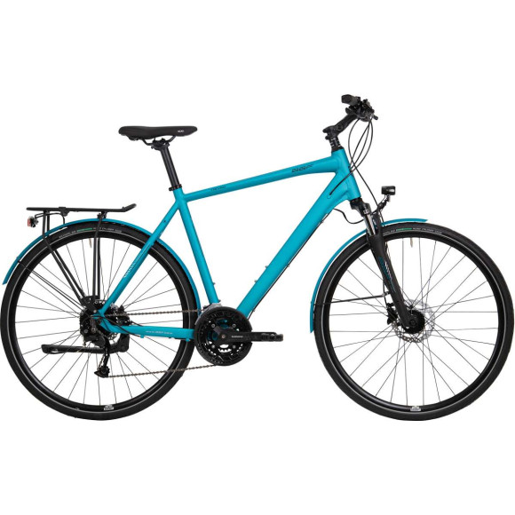 Rama: aluminium, męska Widelec: amortyzowany, Suntour NEX Biegi: Shimano Deore 27-biegowy Obręcze: aluminium, wielokomorowe, X6, pod tarcze Piasty: przód: Shimano dynamopiasta, czarna tył: 27-biegowa Ogumienie: Schwalbe Road Cruiser czarne z odblaskiem Hamulce: Shimano MT200 tarczowe, hydrauliczne Oświetlenie: przód: AXA Compactline, 35 ls tył: AXA Slim Steady Dopuszczalna waga całkowita: 120 kg Waga: około 16,1 kg Kolor: petrol mat