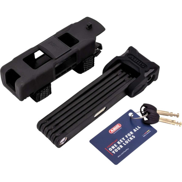 Pręty o grubości 5 mm - innowacyjna i elastyczna konstrukcja przegubów - zwarta, lekka i bezpieczna - osłona „Soft Touch” - wykonana ze specjalnie hartowanej stali - łączenie prętów za pomocą specjalnych nitów - w tym kieszeń na zamek - poziom bezpieczeństwa Abus 10 - kolor: czarny