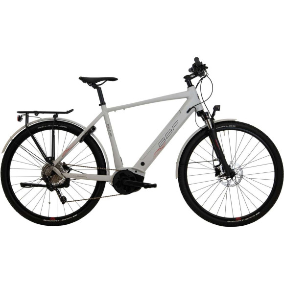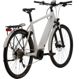 Rama: aluminium, męska, ze zintegrowanym akumulatorem Widelec: amortyzowany, Suntour NEX E25 Biegi: Shimano Deore 10-biegowy Obręcze: aluminium, wielokomorowe Piasty: przód: aluminium tył: 10-biegowa Ogumienie: Schwalbe Energizer Plus 28x2.0" Hamulce: Shimano MT200 tarczowe, hydrauliczne Oświetlenie: przód: B&M Lumotec Upp tył: Herrmans H-Trace Wyświetlacz: Bosch Intuvia Napęd: Bosch Performance Line Panel obsługi: Turbo, eMTB, Tour, Tour+, Eco, wejście USB, licznik rowerowy Silnik: umieszczony centralnie: Bosch, 36V, o mocy nominalnej 250 Wat Akumulator: litowo-jonowy (36V - 13,9 Ah / 500 Wh) Ładowarka: oryginalna Bosch Czas ładowania: około 4. godz (przy 100% ładowaniu) Zabezpieczenie akumulatora: Abus Osiągi: około 79 - 191 km Waga: około 29,1 kg Dopuszczalna waga całkowita: 140 kg Kolor: srebrny mat