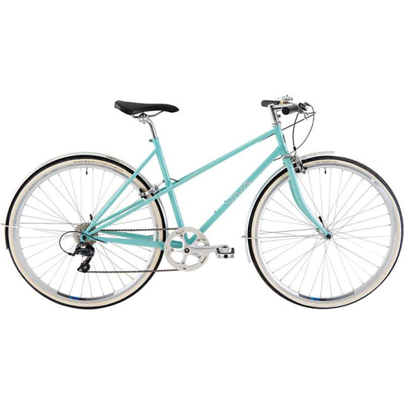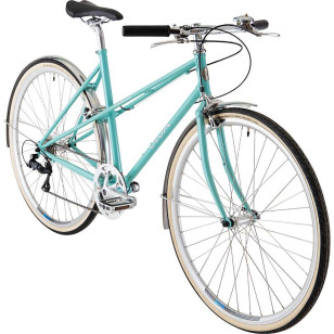 Rama: stal, CrMo Widelec: sztywny Biegi: Shimano Sora 9-biegowy Ogumienie: Schwalbe Road Cruiser Piasty: przód: aluminium tył: aluminium, 9-biegowa Hamulce: Promax RC-483 Wag: około 12,5 kg Kolor: miętowy