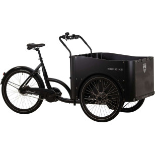 Rama: aluminium, transportowa, bez pałąków do pokrowca przeciwdeszczowego Biegi: Shimano Nexus 7-biegowy, wolnobieg Obręcze: aluminium, wiellokomorowe, czarne Ogumienie: Cargo z odblaskiem Hamulce: aluminium, Tektro Auriga tarczowe, hydrauliczne Oświetlenie: przód: lampka LED na baterie tył: lampka LED na baterie Wyposażenie specjalne: całkowicie składane siedzisko dziecięce siedzisko ze zintegrowanym schowkiem Wymiary drewnianej skrzyni: 59 x 87 x 52 cm Napęd: Pendix eDrive 300 Silnik: umieszczony centralnie: 48 V, 250 W mocy nominalnej Akumulator: litowo-jonowy z BMS (48 V / 300 Wh) Osiągi: około 35 - 180 km Waga: około 70 kg Dopuszczalna waga całkowita: 225 kg Kolor: czarny mat Rower dostarczamy zmontowany, wymagany niewielki montaż końcowy.