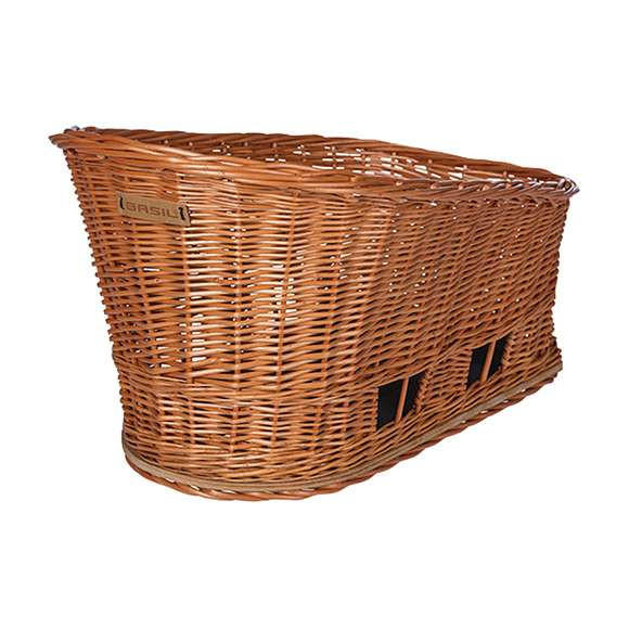 - koszyk do przewozu zwierząt - łatwy montaż do każdego roweru, nawet elektrycznego! - w zestawie z płytką adaptera MIK - wykonany z ręcznie plecionej wikliny - wyposażony w wygodną poduszkę, którą można prać - możliwość doposażenia w drucianą kopułę Basil Pascha (do osobnego zamówienia nr art. 1071078) - pojemność: 38 litrów - wymiary: 50 x 27 x 27 cm - kolor: jasnobrązowy